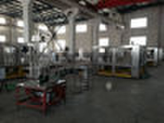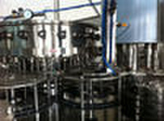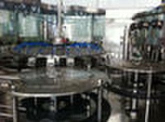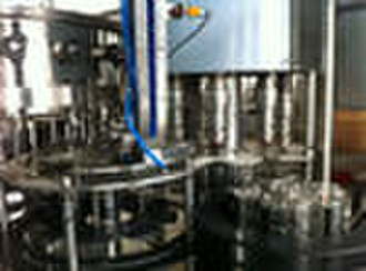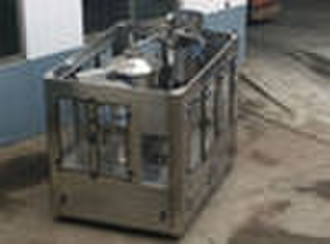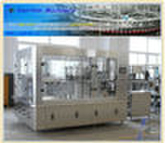 1.This kind of complete set of machine combines washing,filling and rotary capping functions in one unit,is a fully automatic and high efficiency liquid packing equipment.2.It is suitable for packing beverage containing gas. Its performance is as following all parts,for instance, filling valve, which directly contact medium are made of stainless steel or harmless material. So it conforms to the requirements of Food sanitation. Sealing parts are made of heat-proofing rubber, in order to meet the technique requirements of users to sterilization at high temperature.3.Using programmable controller to realize fully automatic control from bottles entering to finishing packing, Using transducer as speed regulator, so the user can regulate the machine easily to suit different power requirements, Adopting equal pressure filling principle and current spring valves in order to assure beverage quality, Using advanced magnetic coupler to regulate cap-screwing torque, in order to assure capping quality.ModelDCGF18186DCGF24248DCGF323212DCGF404015DCGF505018DCGF606020Head of washing, filling, sealing18-18-624-24-832-32-840-40-1050-50-1860-60-20Production capacity (bottle/hour)5000-60006000-70008000-9000100001100015000Suitable bottle diameter(mm)φ=50-100 H=150-310 330-1500mlφ=50-100 H=150-310 330-1500mlφ=50-100 H=150-310 330-1500mlφ=50-100 H=150-310 330-1500mlφ=50-100 H=150-310 330-1500mlφ=50-100 H=150-310 330-1500mlFilling precision≤±5mm≤±5mm≤±5mm≤±5mm≤±5mm≤±5mmMotor power3.84kw4.1kw5.6kw7.5kw9kw11kwFilling pressure≤0.4≤0.4≤0.4≤0.4≤0.4≤0.4Overall dimension (mm)2400×1900×23002800×2100×23004200×2300×23005000×2800×24005900×3100×24006500×3500×2400Weight(Kg)3000400050007500900011000Filling machine